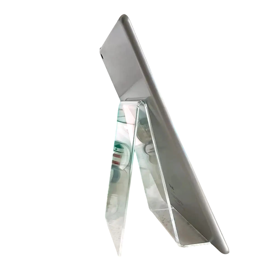 Elegante transparente Unterstützung für die sichere Präsentation von Büchern, Tablets oder Noten. Robustes Material, stabile Konstruktion und universelle Verwendung zu Hause und im Büro. Vollständige Beschreibung