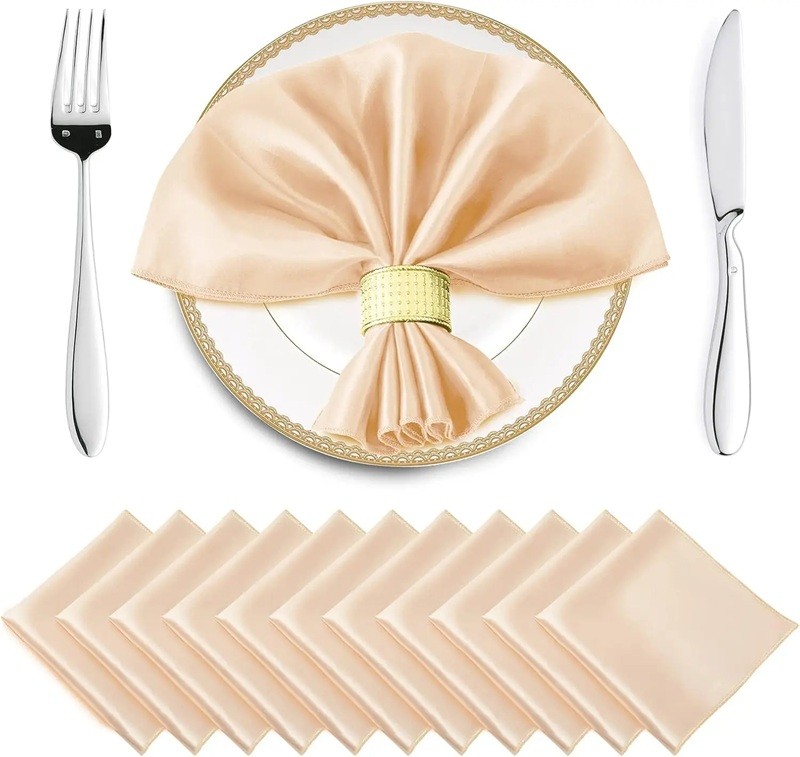 Das hochwertige Satinmaterial ist angenehm im Griff, leicht und wirkt gleichzeitig repräsentativ. Die Servietten lassen sich leicht mit anderen Textildekorationen wie Tischdecken, Tischläufern oder Stuhlhussen kombinieren. Dank des universellen Designs passen sie sowohl in moderne, klassische als auch romantische Dekorationsstile. Die Wiederverwendbarkeit macht sie zu einer praktischen und langfristigen Investition für Ihren Tisch.