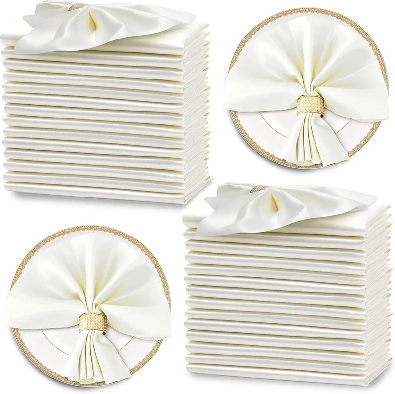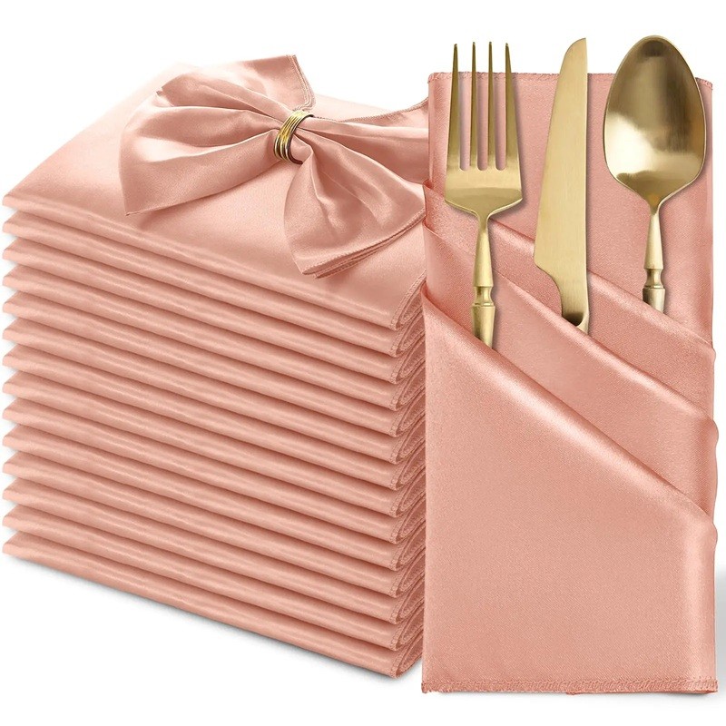 Luxuriöse Satinservietten verleihen der Hochzeits- und Festtafel ein elegantes Aussehen und einen feinen Glanz für perfektes Tischdecken. Vollständige Beschreibung