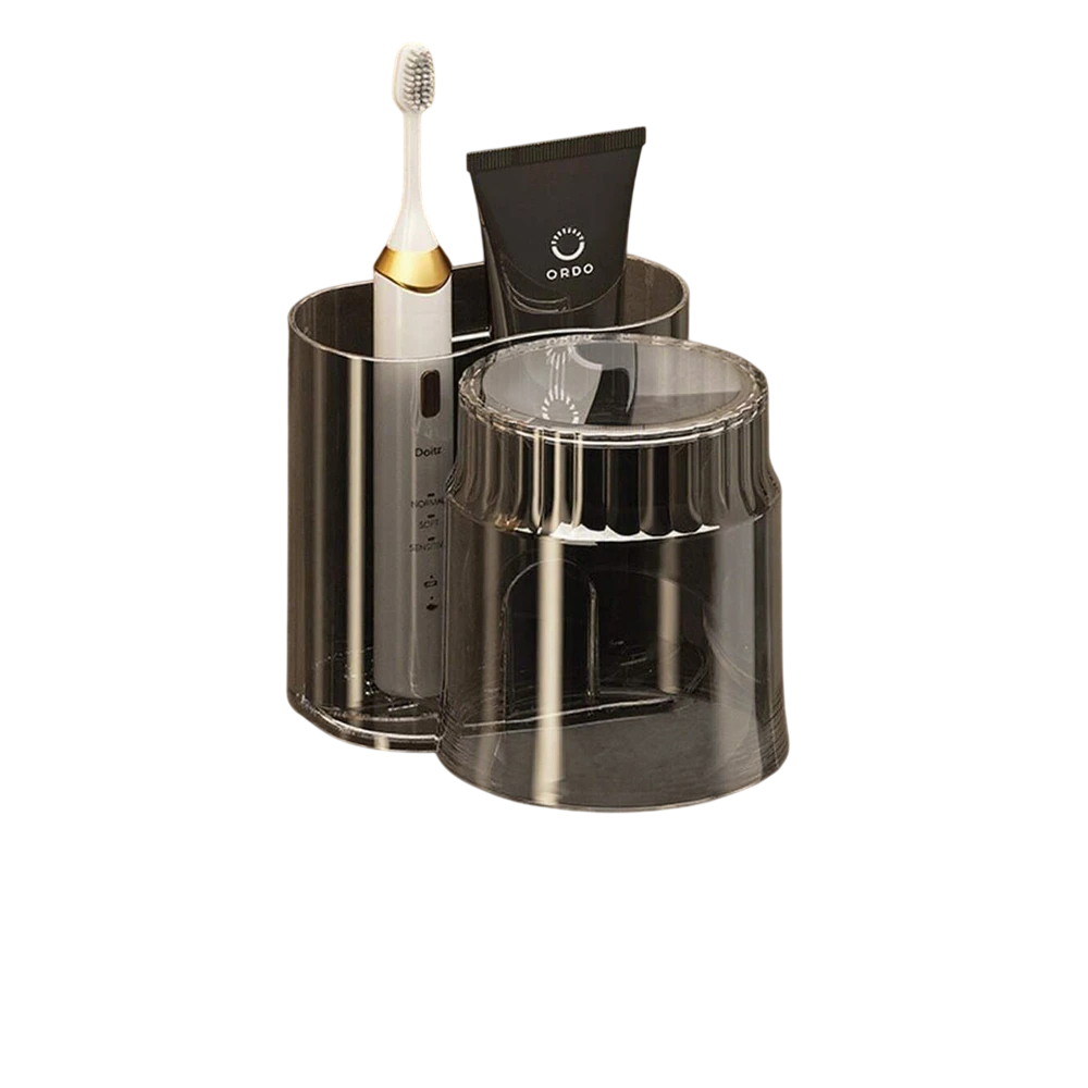 Zum Halter gehört auch ein praktischer Becher für Mundwasser, der leicht herausgenommen und verwendet werden kann.