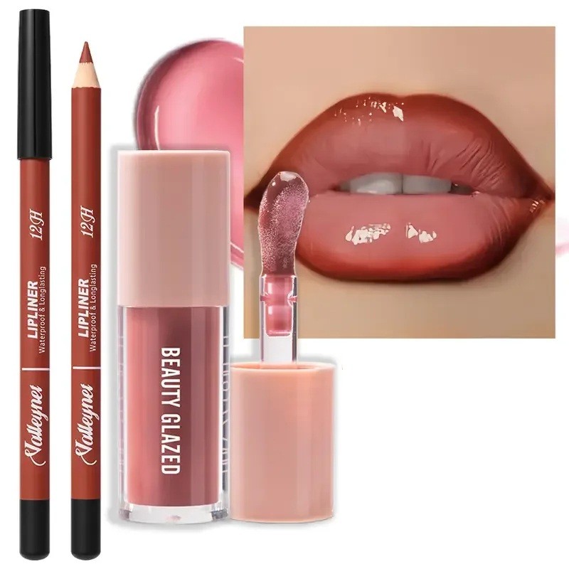 Startseite Startseite Gesundheit und Schönheit Lippen Lip Liner und Lippenkonturenstifte 2 Stück Set Konturenstift und Lipgloss Wasserfeste Make-up in Hauttönen für einen natürlichen Lippenlook