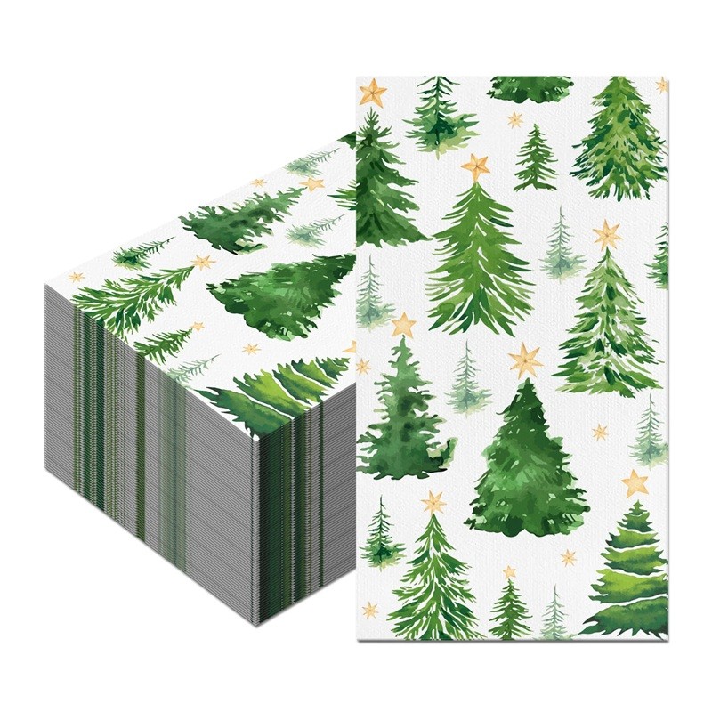 Weihnachtliche Papierservietten mit Tannenbaum-Motiv sind eine großartige Wahl für festliche Tischgestaltung während der Winterfeiertage. Sie kombinieren praktische Nutzung mit einem schönen weihnachtlichen Design, das dem Tisch ein elegantes und gemütliches Aussehen verleiht. Dank der ausreichenden Größe und guten Saugfähigkeit sind sie für den täglichen Gebrauch bei festlichen Anlässen geeignet. Diese Servietten helfen, eine angenehme Atmosphäre bei gemeinsamen Momenten mit Familie und Freunden zu schaffen.