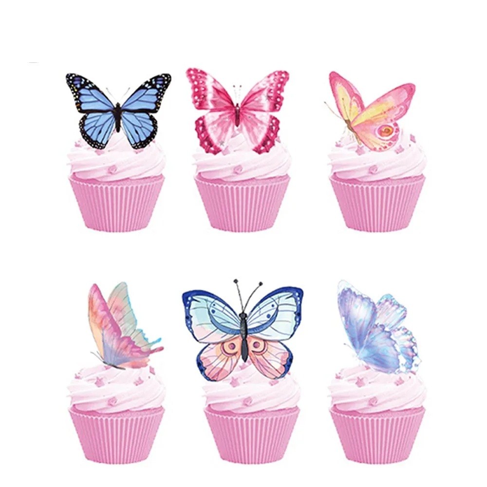 - Inhalt der Verpackung: 24 × Cupcake-Topper mit Schmetterlingsmotiv