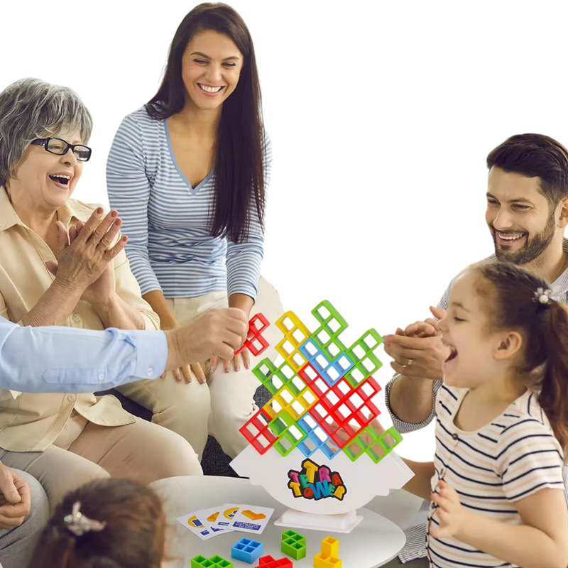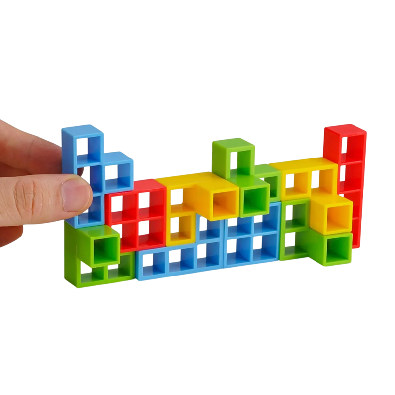 Dieses Balancespiel bringt Spannung, Lachen und Konzentration bei jedem Zug. Die Spieler platzieren nacheinander die Bauklötze auf der Basis und versuchen, den gesamten Turm so lange wie möglich im Gleichgewicht zu halten. Jeder falsche Zug kann zum Sturz der Konstruktion führen, was das Spiel unvorhersehbar und sehr unterhaltsam macht. Dank der einfachen Regeln können Kinder, Erwachsene und ganze Gruppen von Freunden am Spiel teilnehmen. Tetra Tower ist die ideale Wahl für familiäre Spielabende, Feiern und Partys.