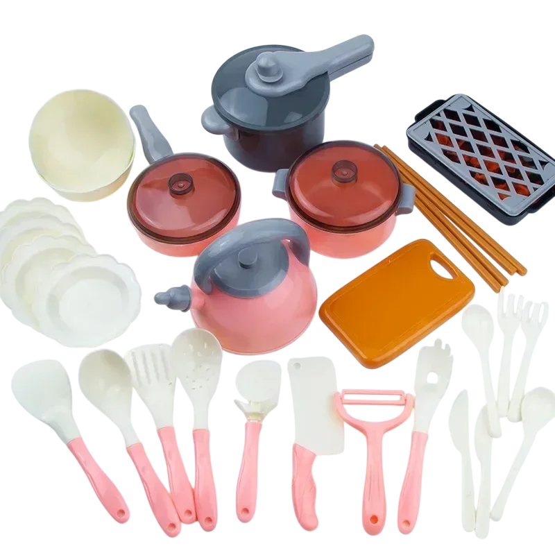 Das Set enthält insgesamt 92 Teile Zubehör, die eine breite Palette an Spielmöglichkeiten bieten. Die Kinder können ihr eigenes Menü zubereiten, Essen servieren oder die Rollen von Koch und Gast spielen. Das Kochen fördert die Feinmotorik und Kreativität und unterstützt gleichzeitig die soziale Interaktion beim gemeinsamen Spielen mit Freunden oder der Familie. Durch das vielfältige Angebot an Küchenutensilien und Lebensmitteln genießen die Kinder ein realistisches Spielerlebnis.