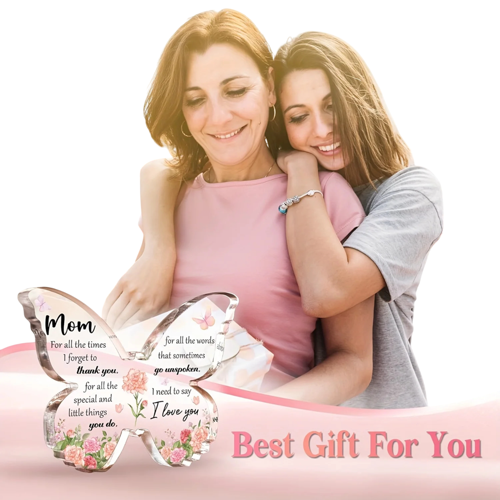 Romantische Acryl-Dekoration in Schmetterlingsform mit Rosenmotiv und liebevoller Botschaft für Mama. Stilvolles Accessoire für jeden Anlass. Vollständige Beschreibung