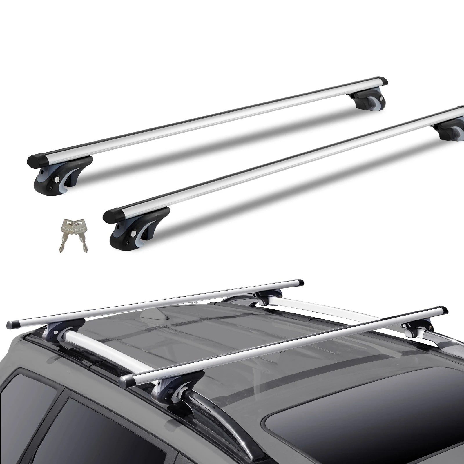 Aluminium Dachträger 1370 x 72 x 106 mm Abschließbar Einstellbar für Erhöhte Längsträger Tragfähigkeit 90 kg Aerodynamische Träger