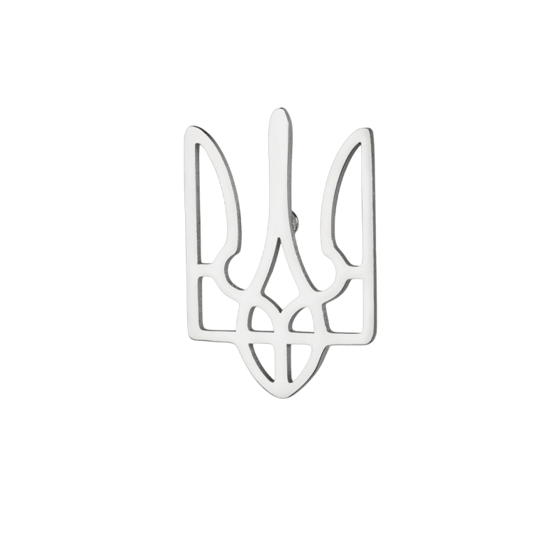 Metallischer Anstecker mit dem Motiv des nationalen Symbols der Ukraine. Kompakte Brosche geeignet für Anzug, Kragen und Sakko als dezentes Accessoire. Vollständige Beschreibung