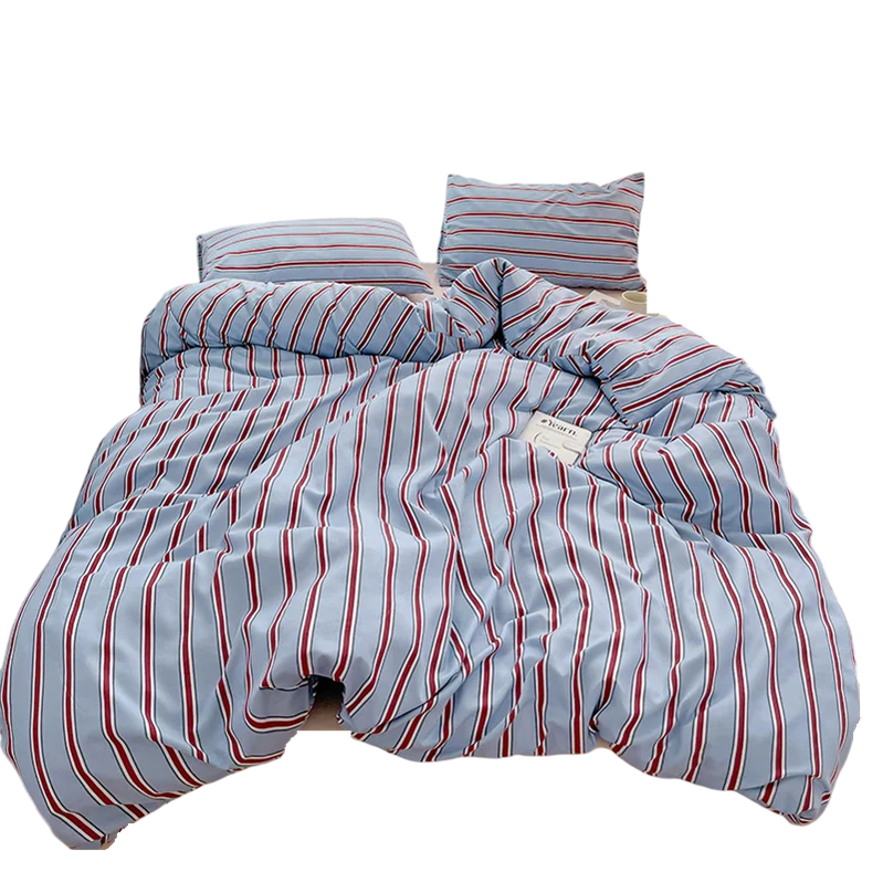 Startseite Startseite Haushalt Heimtextilien Bettlaken Bettwäsche Set 4-teilig gestreift rot blau Bettbezug 200 x 230 cm + Bettlaken + 2x Kissenbezug