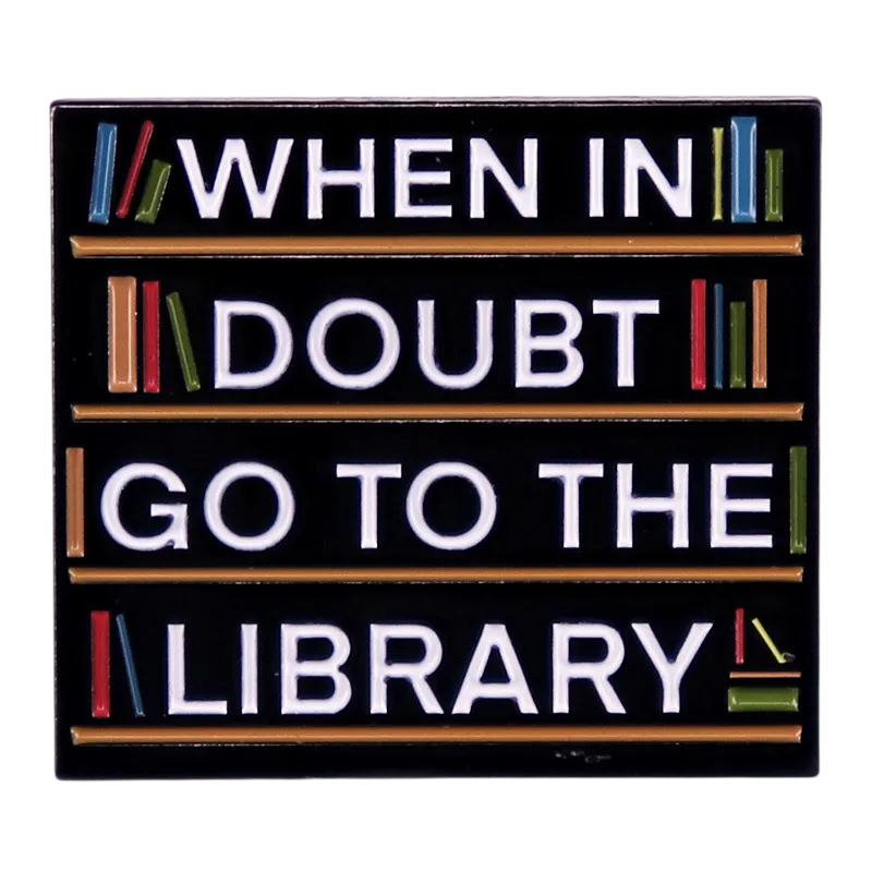 Startseite Startseite Schmuck und Uhren Broschen Bibliotheksbrosche Zitat Wenn Zweifel bestehen, gehe zur Bibliothek metallischer Pin schwarz mehrfarbiger dekorativer Anstecker für Kleidung Rucksack