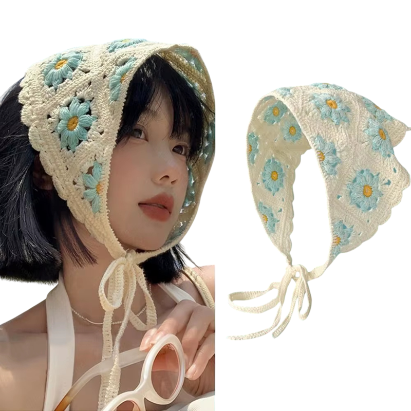 Startseite Startseite Kleidung und Accessoires Damenbekleidung Accessoires für Damen Schals und Tücher für Damen Blumen Handgehäkelter Dreiecksschal Frühlings Sommer Haarschal für Frauen Niedliche leichte Kopfbedeckung für Reisen