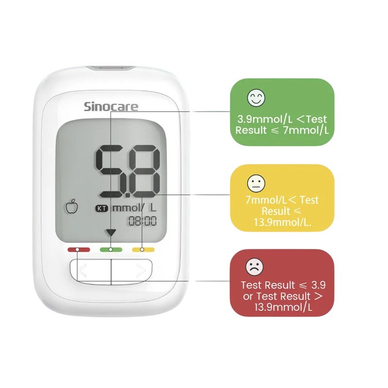 Das Blutzuckermessgerät Aicare ist ein praktisches und präzises Werkzeug zur Messung des Blutzuckerspiegels, geeignet für den Hausgebrauch und die regelmäßige Überwachung während des Tages. Dank des Messbereichs von 20–600 mg/dL und 1,1–33,3 mmol/l liefert es zuverlässige Ergebnisse für eine breite Nutzergruppe. Für die Ablesung genügt lediglich 0,6 μl peripheres oder venöses Vollblut, was den Komfort beim Testen erheblich verbessert. Das Ergebnis ist bereits nach 5 Sekunden verfügbar, was eine schnelle Reaktion und Kontrolle ermöglicht. Teil des Geräts ist auch ein Speicher für bis zu 500 gespeicherte Ergebnisse, mit dem der Blutzuckerspiegel langfristig überwacht werden kann.