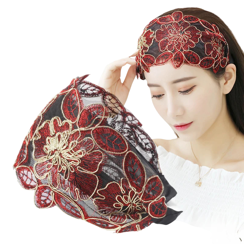 Breite Spitzenhaarreif mit Blumenstickerei Universelle Größe Eleganter Damenhaarreif für Haare Festlicher modischer Haarschmuck