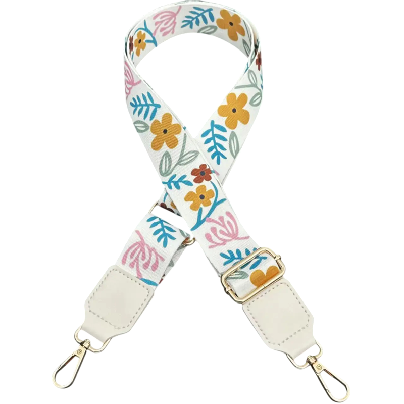 Stylisches Accessoire, das das Aussehen Ihrer Handtasche im Handumdrehen verändern kann. Dieser breite verstellbare Handtaschenriemen wurde entwickelt, um modernes Design, Tragekomfort und praktische Nutzung für den täglichen Gebrauch zu kombinieren. Dank des dekorativen Blumen- und Blattmusters wird der Riemen zu einem auffälligen Modeelement, das schlichte Handtaschen und Taschen aufpeppt.