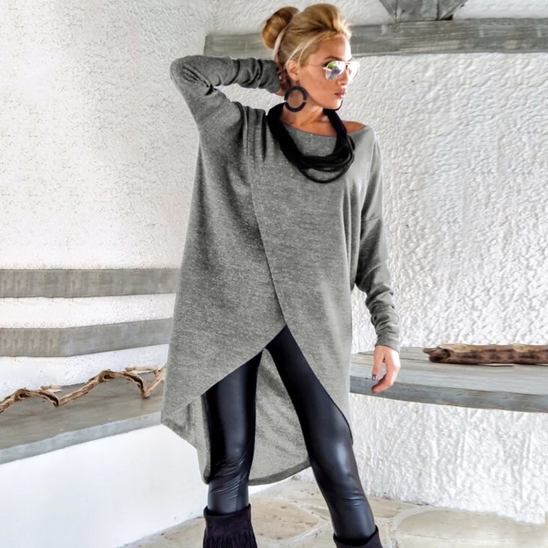 Damen Herbstkleid mit asymmetrischem Schnitt.