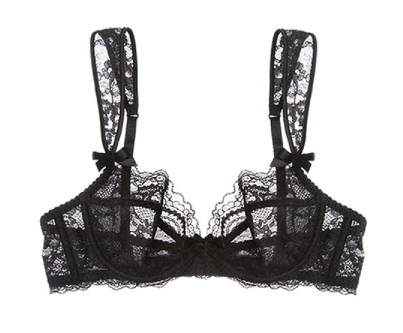 Der BH besteht größtenteils aus Spitze und ist transparent.