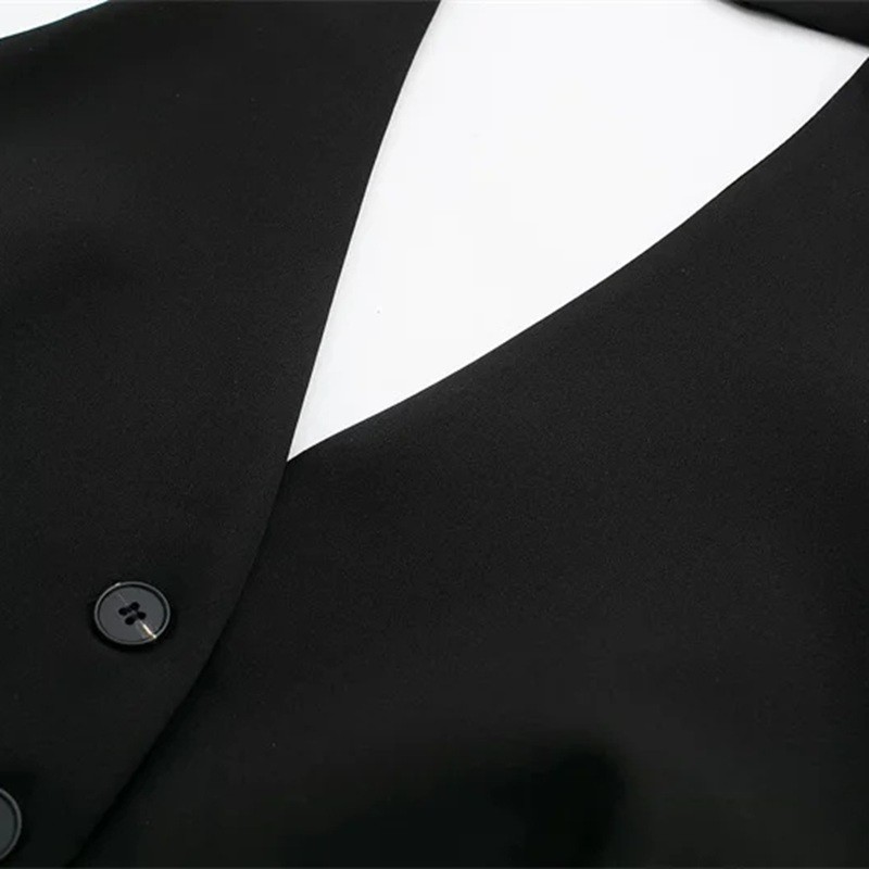 Startseite Startseite Kleidung und Accessoires Damenbekleidung Jacken und Mäntel für Damen Westen für Damen Damen elegante einfarbige Weste mit V-Ausschnitt und Taschen Stilvolle Polyesterweste mit Trägern um den Hals und Bindeband im Rücken