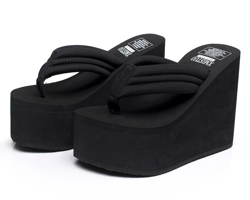 Diese hohen Plateau-Flip-Flops sind sehr bequem und praktisch.