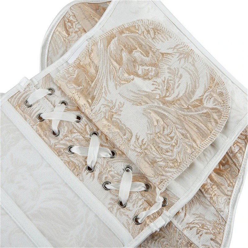 Startseite Startseite Kleidung und Accessoires Damenbekleidung Unterwäsche für Damen Korsetts für Damen Damen Korsett ohne Träger Beige mit Mustern V-Ausschnitt Schnürung hinten Polyester Eleganter figurbetonter Top