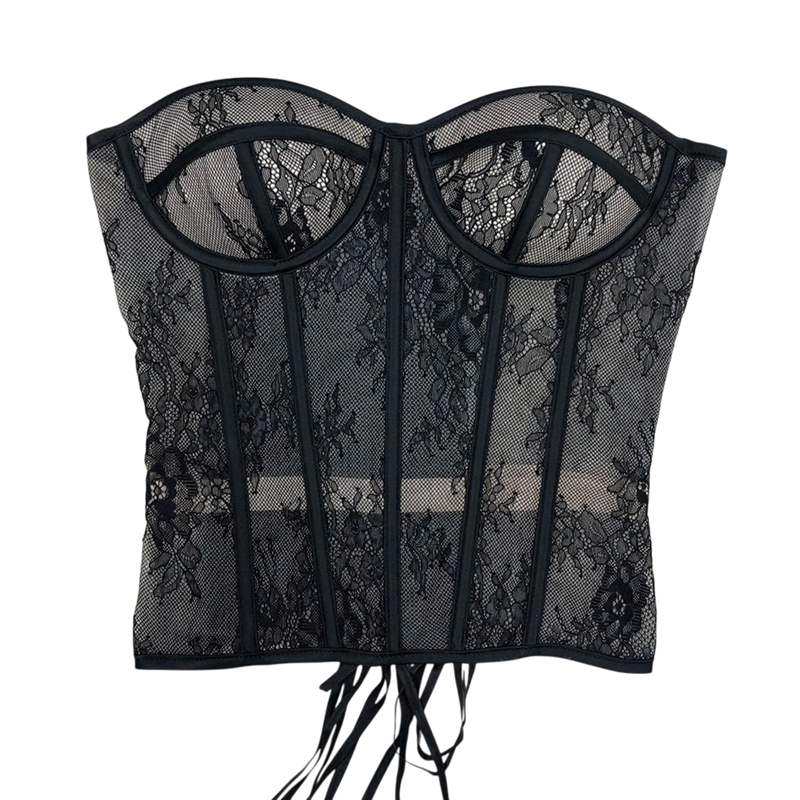 Elegantes Stück mit Schnürung hinten betont die Silhouette, hält die Form und passt sich dank des elastischen Materials bequem an die Figur an. Vollständige Beschreibung