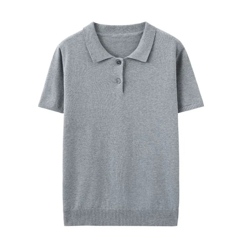Startseite Startseite Kleidung und Accessoires Damenbekleidung T-Shirts und Tops für Damen Kurzarm T-Shirts und Tops für Damen Damen Poloshirt mit kurzen Ärmeln Einfarbig Ausführung V-Ausschnitt mit Kragen und Knöpfen Baumwolltop