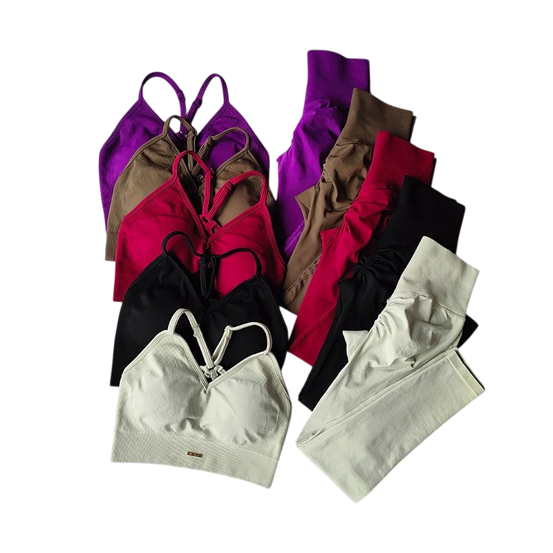 Damen Sportanzug mit Leggings und Sport-BH, einfarbig, Nylon, bequem und stylisch für Fitness und Training