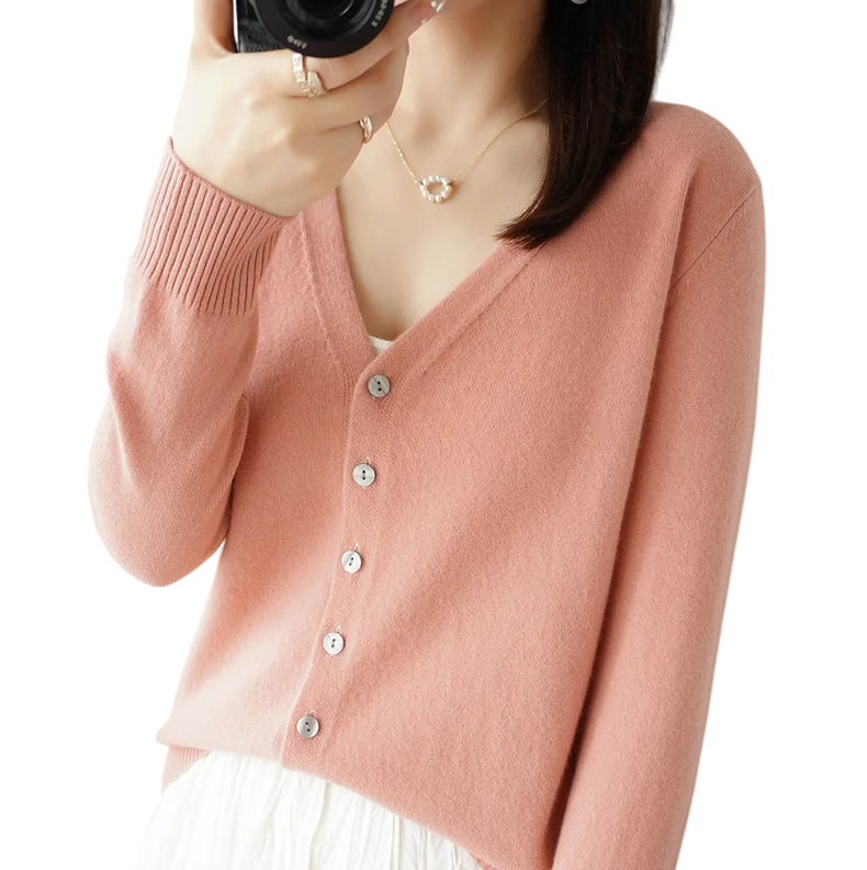 Startseite Startseite Kleidung und Accessoires Damenbekleidung Pullover und Cardigans für Damen Cardigans für Damen Damen Strickjacke mit V-Ausschnitt Eleganter Knopf-Cardigan Einfarbiger modischer Pullover Verschiedene Farben Polyester Acryl