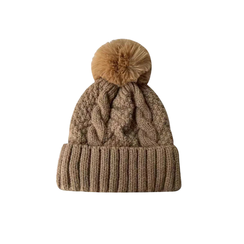Startseite Startseite Kleidung und Accessoires Damenbekleidung Accessoires für Damen Mützen für Damen Wintermützen für Damen Damen Winter Strickmütze Twist mit Pelzbommel Polyester warme Mütze 55–60 cm Einfarbige Skimütze mit flauschiger Bommel