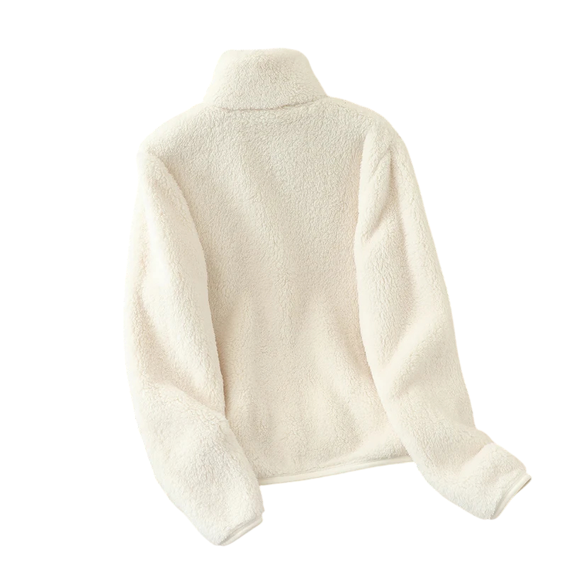Fleece-Winterjacke aus Polyester mit hohem Kragen, weichem wärmendem Obermaterial und Reißverschluss bietet Komfort, Wärme und Stil für die Winterzeit. Vollständige Beschreibung