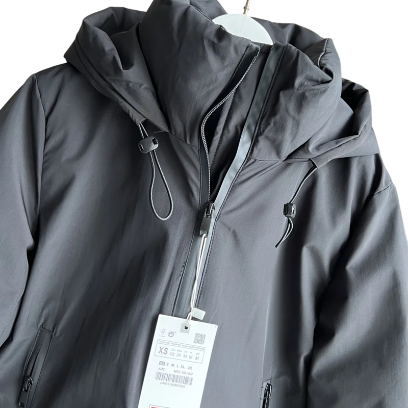 Dank ihrer Ausführung bietet diese Jacke die ideale Kombination aus Funktionalität und zeitlosem Aussehen. Das verwendete Polyester ist praktisch und widerstandsfähig gegenüber winterlichen Bedingungen, was eine lange Lebensdauer garantiert. Die Kapuze bietet eine zusätzliche Schutzschicht und erhöht den Wärmekomfort an wirklich kalten Tagen. Die schwarze Farbe ist universell und verleiht dem gesamten Outfit einen eleganten und gepflegten Stil. Wenn Sie eine warme und bequeme Jacke benötigen, die Sie während der Wintermonate schützt und gleichzeitig gut aussieht, wird dieses Modell zu einem zuverlässigen Bestandteil Ihrer Garderobe.