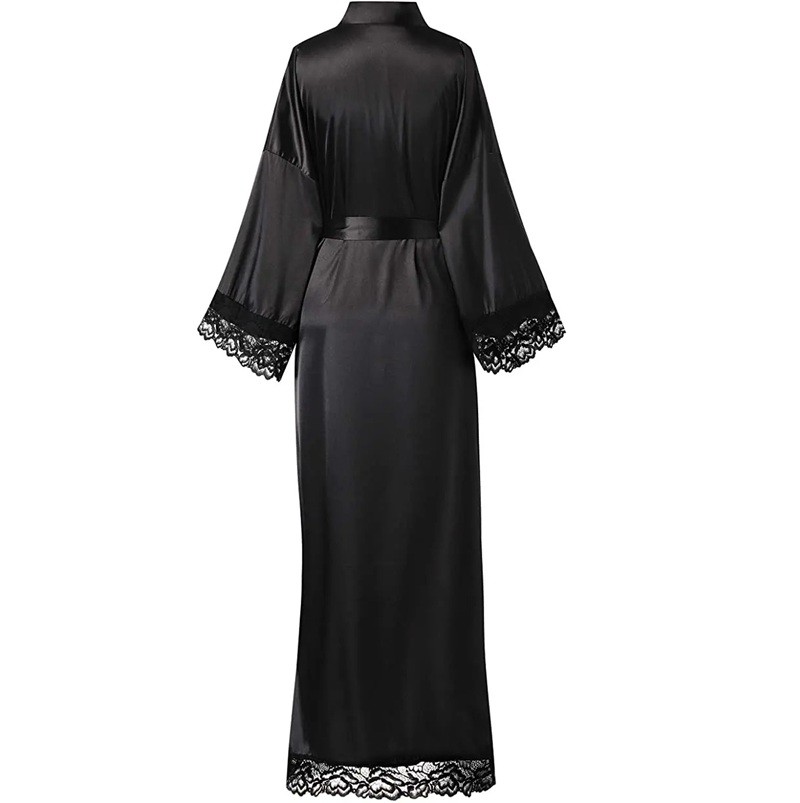 Startseite Startseite Kleidung und Accessoires Damenbekleidung Nachtwäsche für Damen Bademäntel für Damen Damenbademantel mit Spitze Eleganter leichter Bademantel mit seidig glänzender Oberfläche Bindeband Luxus bequemer Bademantel aus weichem Polyester