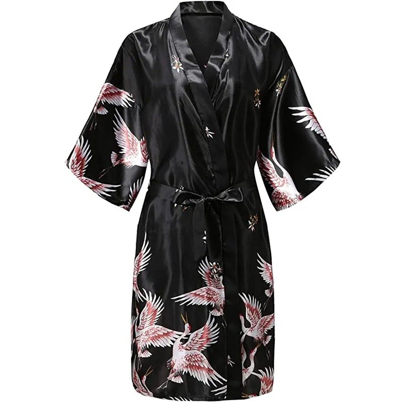 - Lieferumfang: 1x Damen Seidenbademantel mit Vogelmotiv