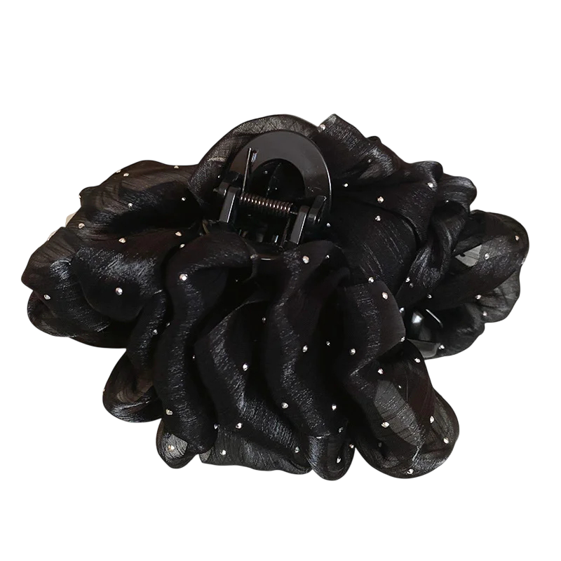 Stylische Damenhaarklammer mit voluminöser Stoffschleife und feinen glitzernden Steinen ist das ideale Zubehör für elegante und romantische Frisuren. Leichter transparenter Stoff erzeugt einen luftigen Effekt und verleiht dem Haar einen sanften Glanz, der bei Bewegung und Licht schön zur Geltung kommt. Dieses Haarschmuckstück verwandelt mühelos eine einfache Frisur in ein auffälliges Modeelement, das sowohl für den Alltag als auch für festliche Anlässe geeignet ist. Die Klammer ermöglicht ein schnelles Zusammenstecken der Haare ohne aufwendige Vorbereitung und schafft in wenigen Sekunden einen gepflegten Look. Das zeitlose Design passt sowohl zu Abendkleidern als auch zu alltäglichen Outfits.