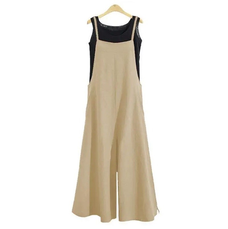 Startseite Startseite Kleidung und Accessoires Damenbekleidung Jumpsuits für Damen Lange Jumpsuits für Damen Damenoverall Einfarbiges Modell Breite Hosen Dünne Träger Mischgewebe Polyester Baumwolle Sommer Outfit Lockerer Schnitt Modische Kleidung