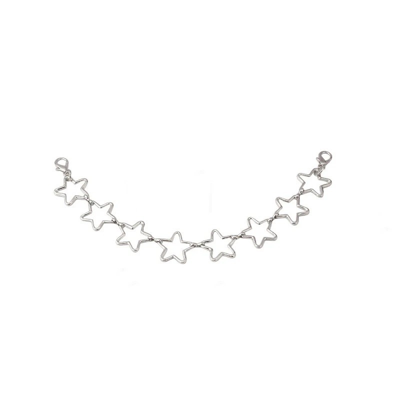 Die Kette hat eine Länge von 29 cm, was sie insbesondere für die Verwendung als kurzer Griff oder dekorativer Kettenanhänger für Handtaschen prädestiniert. An der Kette sind Sternanhänger angebracht, die in einer Kettenkonstruktion verbunden sind und ein charakteristisches Motiv bilden.