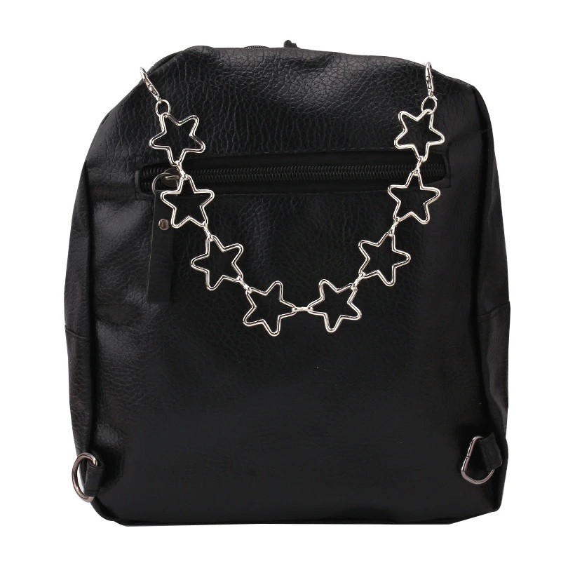 Der dekorative Kettenanhänger für Handtaschen kann als dekoratives Zubehör dienen, das das Aussehen der Handtasche mit einem auffälligen Detail ergänzt. Dieses Modell besteht aus einer Metallkette, die mit Anhängern in Form von Sternen verziert ist. Durch dieses Motiv entsteht ein dekoratives Element, das beim Tragen der Handtasche gut sichtbar ist.