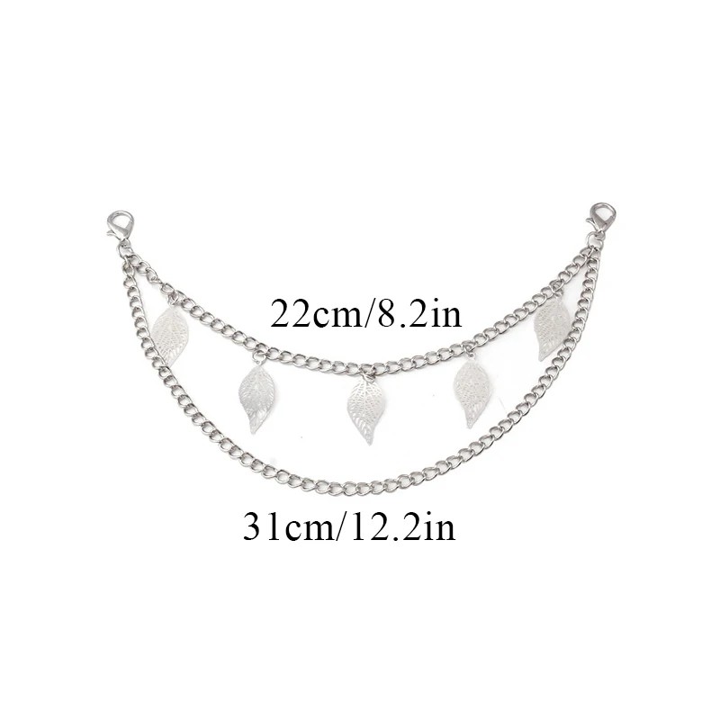 Dekorativer Kettenriemen für Handtaschen mit doppeltem Anhänger und Blättern 22 x 31 cm Metalllegierung Silberner dekorativer Kettenriemen für Handtaschen Ersatzkurzgriff