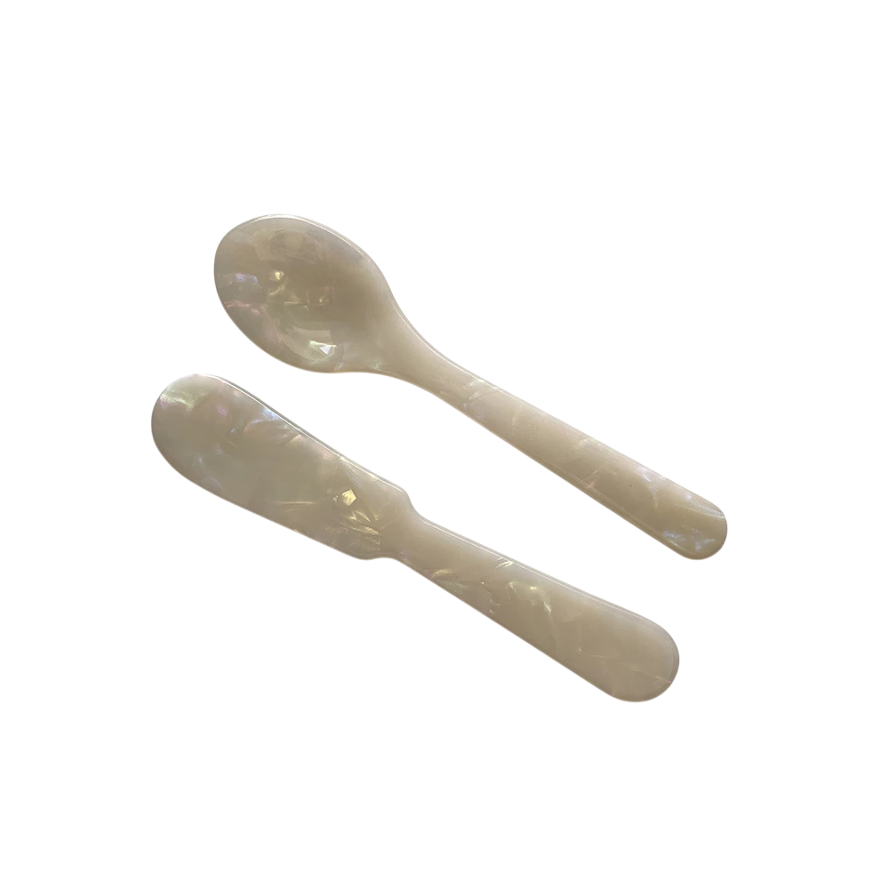 Das Set enthält Dessertlöffel und Marmormesser, die sich hervorragend zum Servieren verschiedener Arten von süßen Gerichten eignen. Der Löffel ist perfekt für Kaffee, Tee, Eis, Joghurt oder Pudding, während das Messer ein bequemes Bestreichen von Marmelade, Honig oder Cremes auf Brot ermöglicht. Daher ist es ein praktisches Zubehör für das tägliche Essen.
