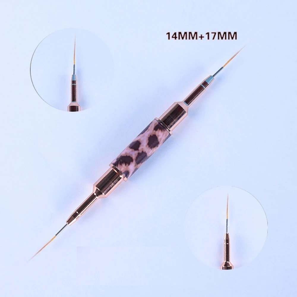 Doppelseitiger Nagelbürste 14 mm + 17 mm Dünner Nail Art Pinsel für detaillierte Zeichnungen und Linienmalerei Leopardendruck Professionelle Dekoration
