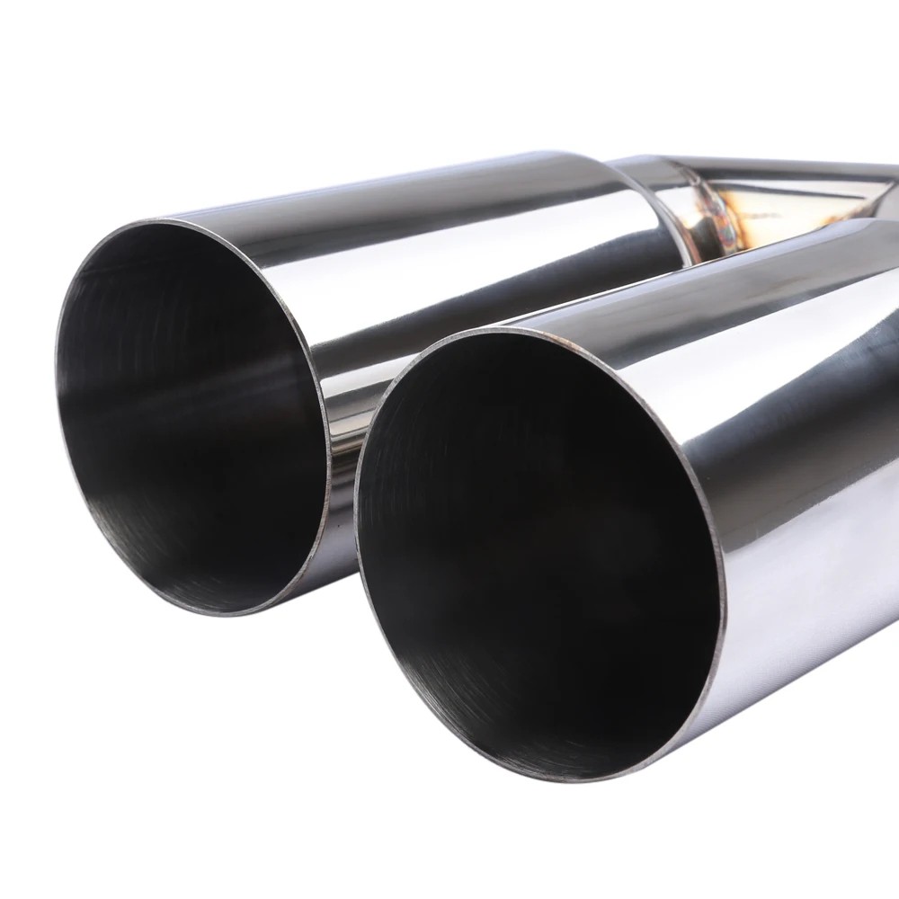 Universelles gebogenes doppeltes Auspuffrohr 63/76 mm aus Edelstahl für Auto Tuning, korrosionsbeständig, hitzebeständig und einfach zu montieren. Vollständige Beschreibung
