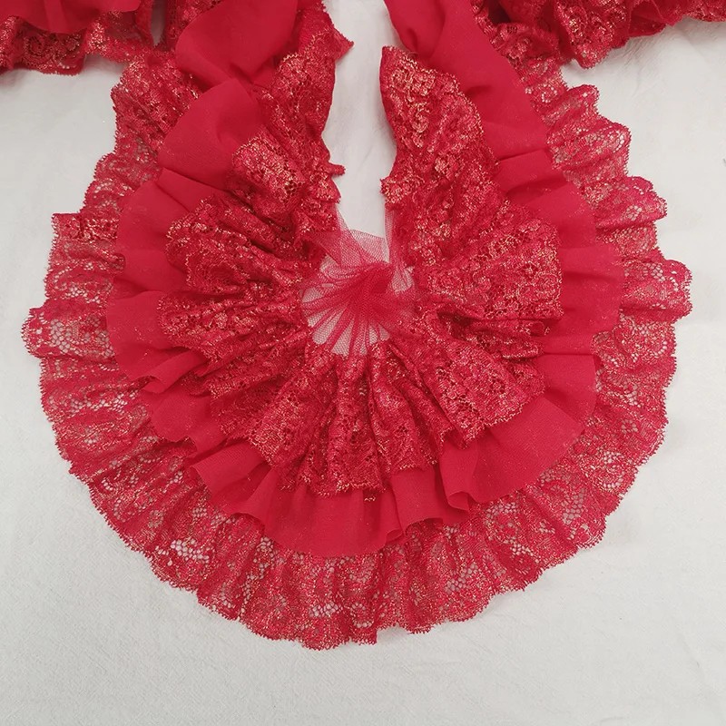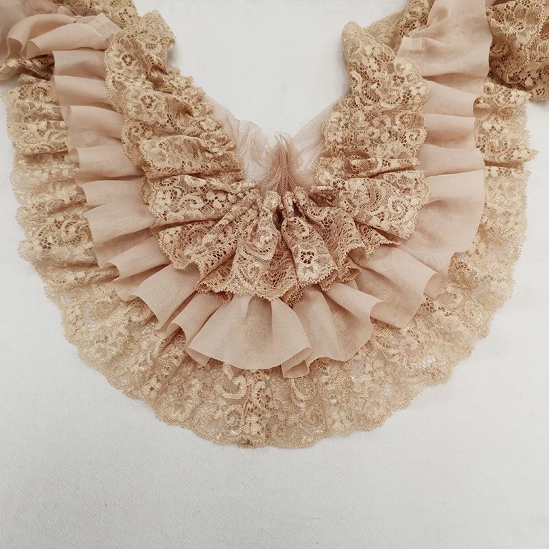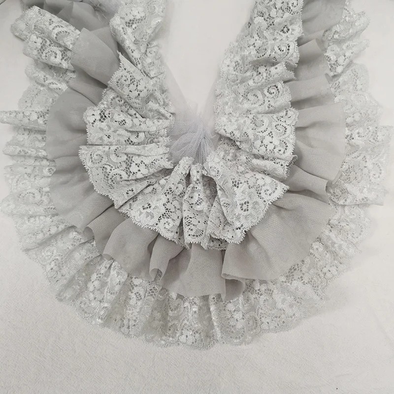 Drei-lagige gefaltete Chiffon-Stoff mit Stickerei 91 cm Breite 10 cm Dekorative Volantspitze zum Nähen von Bekleidungsdekorationen