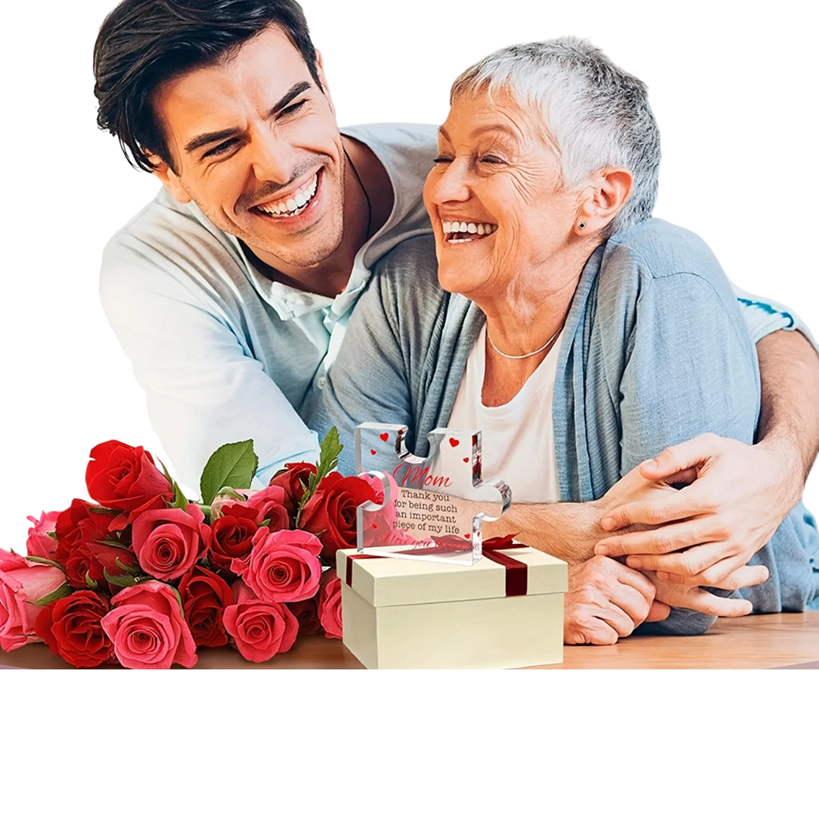 Dieses dekorative Andenken stellt ein elegantes Dankesgeschenk für Mama dar, das zu jedem Anlass Freude bereitet. Das stilvolle Design und die präzise Verarbeitung schaffen ein schönes Symbol für Liebe und familiäre Bindung. Die Dekoration besteht aus hochtransparentem graviertem Acryl, wodurch sie einen luxuriösen und modernen Eindruck vermittelt. Dank der kompakten Größe Maße 8,5 x 7 x 1 cm eignet sie sich für ein Regal, einen Schreibtisch oder einen Nachttisch. Das originelle Design stellt ein einzigartiges Puzzle-Design dar, das die besondere Verbindung zwischen Kindern und Mama symbolisiert.