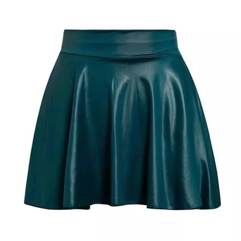 Elastischer Damen-Minirock aus Kunstleder Hohe Taille A-Linie Eleganter schwarzer Rock Sexy Party-Outfit Stylische Mode Herbst Winter