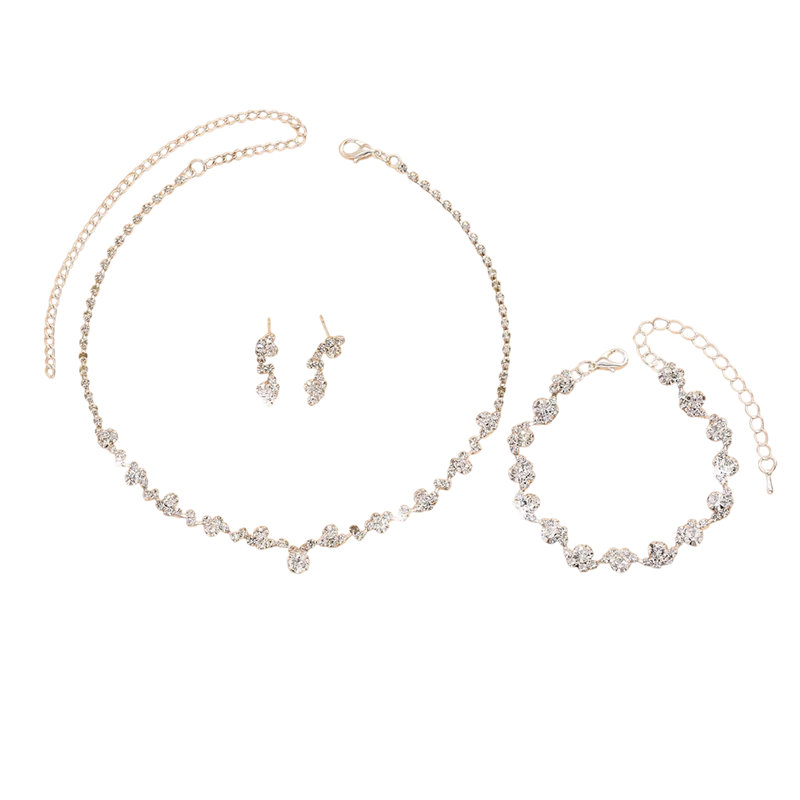 Elegante Damen Blumen Schmuckset Halskette Ohrringe Armband Kupferlegierung Hochzeitsaccessoires Elegantes Schmuckset