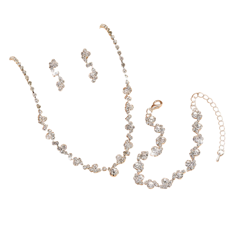 Dieses Set schafft ein perfekt abgestimmtes Gesamtbild, ohne dass eine komplizierte Kombination weiterer Schmuckstücke erforderlich ist. Die zarten Blumenelemente verleihen dem Outfit eine romantische Note und betonen das Dekolleté, das Handgelenk und das Gesicht. Es passt hervorragend zu Hochzeitskleidern, Abendkleidern und eleganten Abendmodellen. Dank der hochwertigen Verarbeitung behalten die Schmuckstücke ihren Glanz und ihre Schönheit auch bei wiederholtem Tragen. Wenn Sie nach einem eleganten Hochzeits-Schmuckset suchen, das Weiblichkeit und Anmut ausstrahlt, ist dieses Set die ideale Wahl für Ihren besonderen Tag.