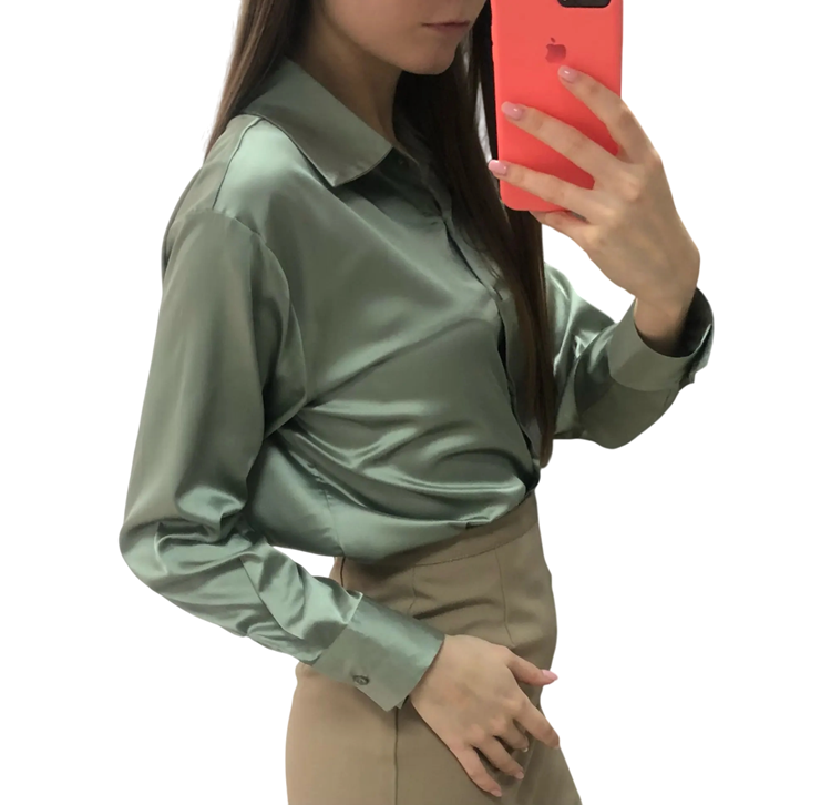Die elegante satinierte Damenbluse ist die perfekte Kombination aus Stil, Komfort und Weiblichkeit. Hergestellt aus hochwertigem glänzendem Polyester-Material, das einen luxuriösen Look verleiht und die Haut angenehm kühlt. Dank des lockeren Schnitts bietet sie Bewegungsfreiheit und garantiert Komfort auch bei ganztägigem Tragen. Die Bluse hat einen klassischen Kragen und einen Knopfverschluss, was ihr zeitloses Design unterstreicht. Sie ist in verschiedenen eleganten Farben erhältlich, die sich leicht mit Hosen, Röcken oder Jeans kombinieren lassen.