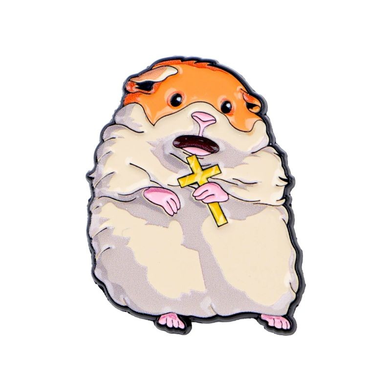 Dieser Emaille-Pin mit Hamster-Motiv zieht sofort mit seiner originellen Verarbeitung die Aufmerksamkeit auf sich. Er kombiniert das niedliche Aussehen des Tieres mit einem unkonventionellen Detail in Form eines Kreuzes, das es in seinen Pfoten hält. Dank seiner Größe eignet er sich als kleines, aber auffälliges Zubehör für Kleidung oder Rucksack.