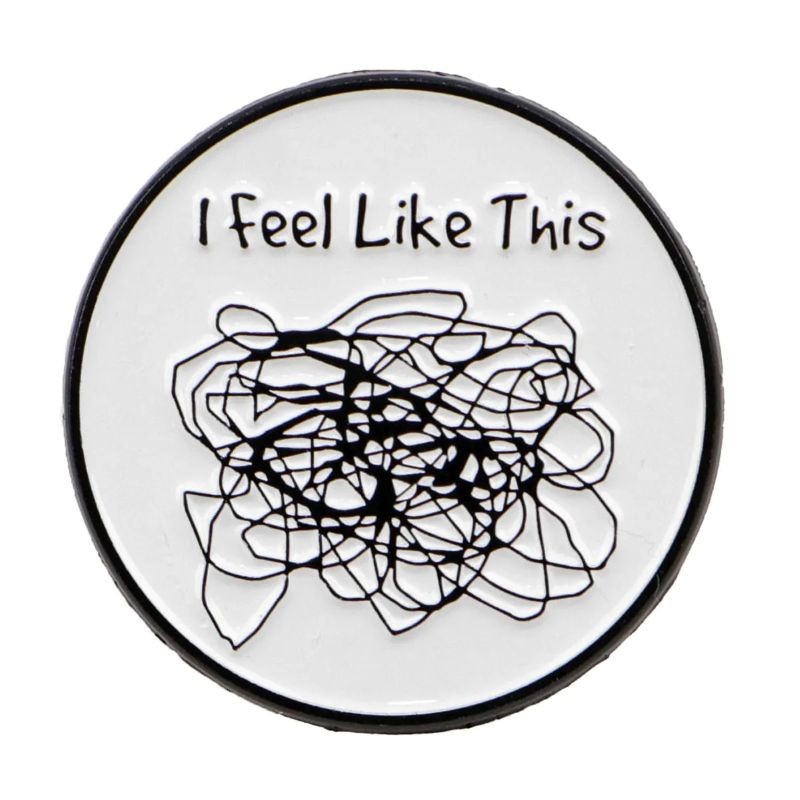 Das Design des Pins basiert auf einfachen Linien und einer abstrakten Zeichnung, die den kurzen Text ergänzt. Die Emaille-Oberfläche sorgt für eine glatte Haptik und klare Kanten des Motivs. Der Pin kann als unauffälliges, aber interessantes Detail des Outfits verwendet werden. Durch die einfache Anbringung ist er für den täglichen Gebrauch geeignet.