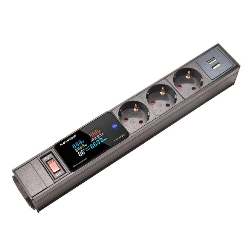 Das Modell bietet 3 EU-Steckdosen, sodass der gleichzeitige Anschluss mehrerer Geräte möglich ist. Bestandteil ist ein integriertes Display mit Messgerät, das gemäß der Abbildung zur Überwachung von Spannung, Strom, Leistung, Energieverbrauch, Messzeit, Leistungsfaktor und Temperatur dient. Dies ist nützlich für einen besseren Überblick über den Betrieb der angeschlossenen Geräte im täglichen Gebrauch. Eine praktische Lösung, die Benutzer schätzen werden, die eine Stromversorgung und grundlegende Verbrauchskontrolle in einem Gerät haben möchten.