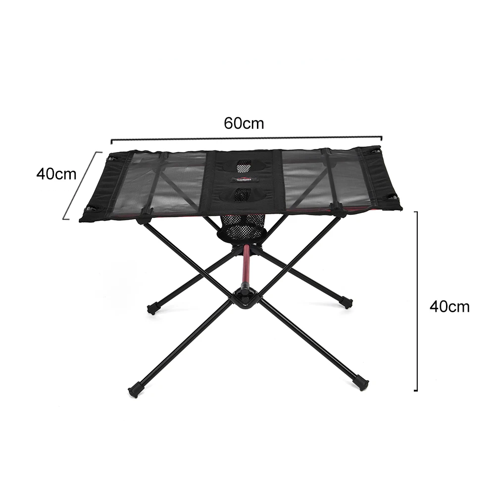 Dank des einfachen Auf- und Abbaus ist die Nutzung schnell und problemlos. Der Tisch ist zudem mit einer Tragetasche ausgestattet, die den Transport erleichtert und ihn beim Transport schützt. Dieses Modell bietet eine stabile Oberfläche zum Abstellen von Speisen, Getränken oder Reiseutensilien und wird somit zu einem unverzichtbaren Helfer bei jeder Outdoor-Aktivität.